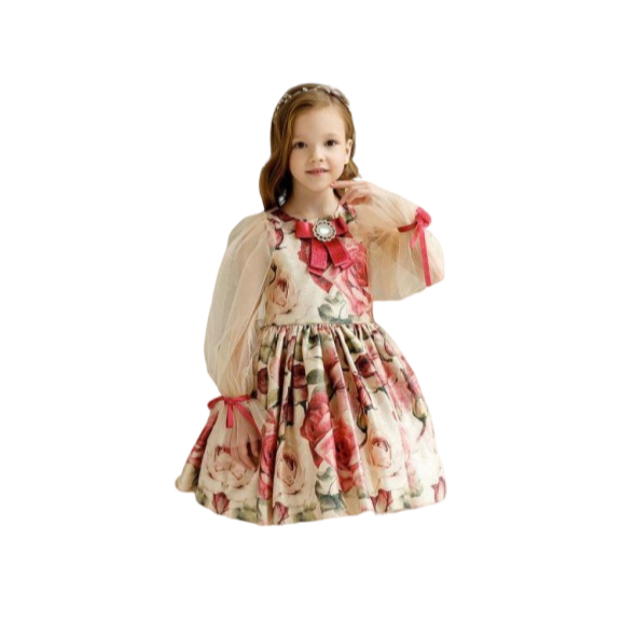 Flower Print Dress With Sleeves
